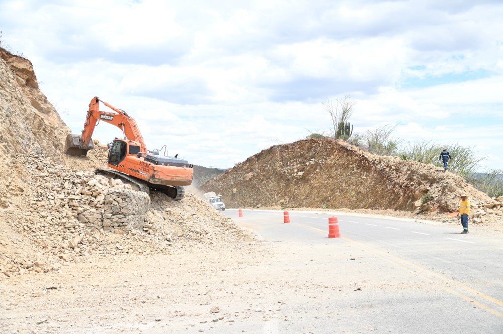 Con el uso de maquinaria como excavadora, mini y cargador frontal se trabaja para liberar el cuerpo derecho de la vialidad, de alrededor de 500 metros cúbicos de material pétreo desprendido. Las labores se estiman concluir en al menos una semana, por lo que se pide a la ciudadanía circular con precaución por la zona.