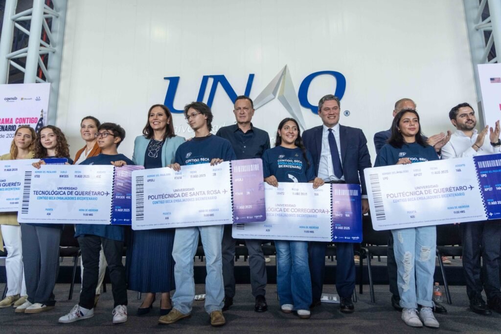 “Pero más que todo eso, no sólo es el viaje, sino que cada uno de ustedes representa lo que Querétaro es, y lo que puede hacer en un futuro también. Y eso son los pioneros en México también. Desde que comenzamos el programa de becas embajadores, becas bicentenario, fue un pequeño sueño, creo yo (…) Y en todo esto, ustedes se darán, quienes serán esos pioneros, esos campeones, que no solamente representarán a sus facultades, a sus universidades, pero más importante, representar a su estado y a su país”, resaltó.