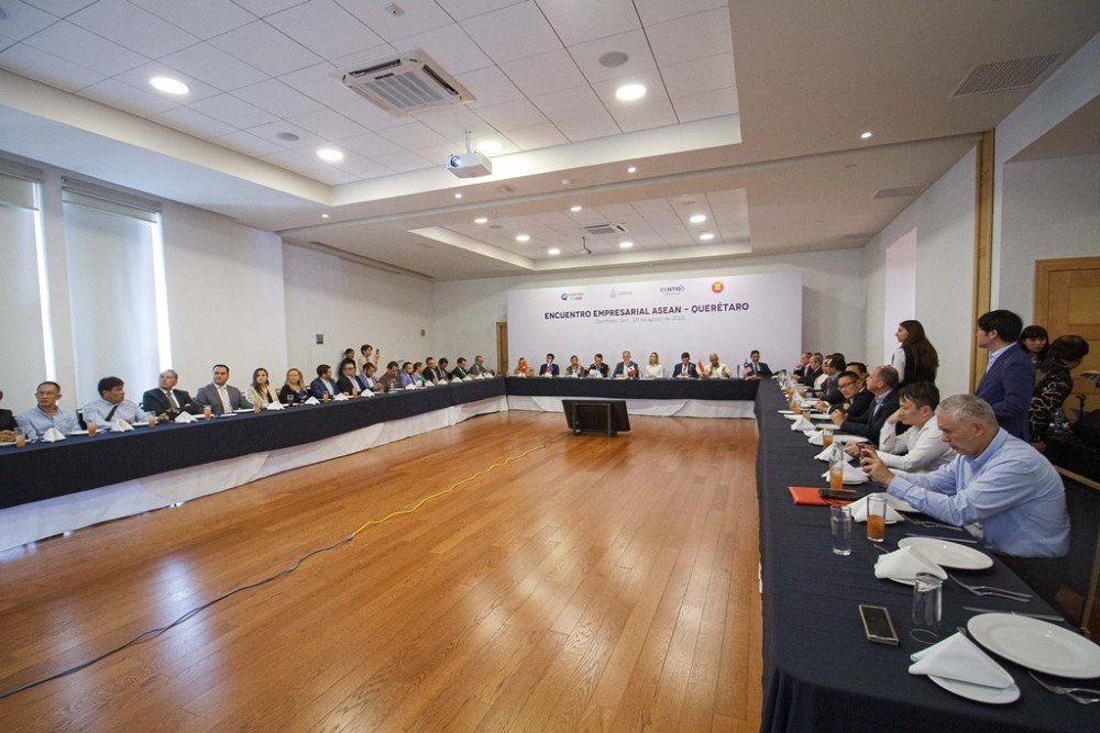 En el marco de la visita a Querétaro de los embajadores de Asociación de Naciones del Sudeste Asiático (ASEAN), el titular de la Secretaría de Desarrollo Sustentable (SEDESU), Marco Antonio Del Prete Tercero, encabezó un encuentro con líderes de cámaras, colegios y asociaciones con la finalidad de fortalecer vínculos que permitan generar nuevas oportunidades de crecimiento e inversión para el estado.